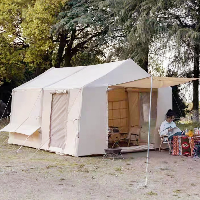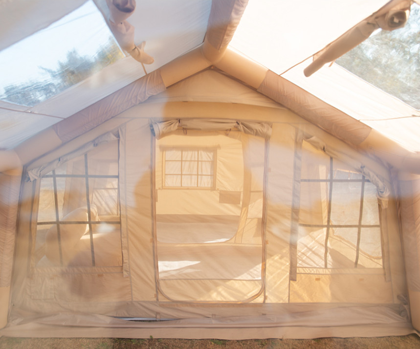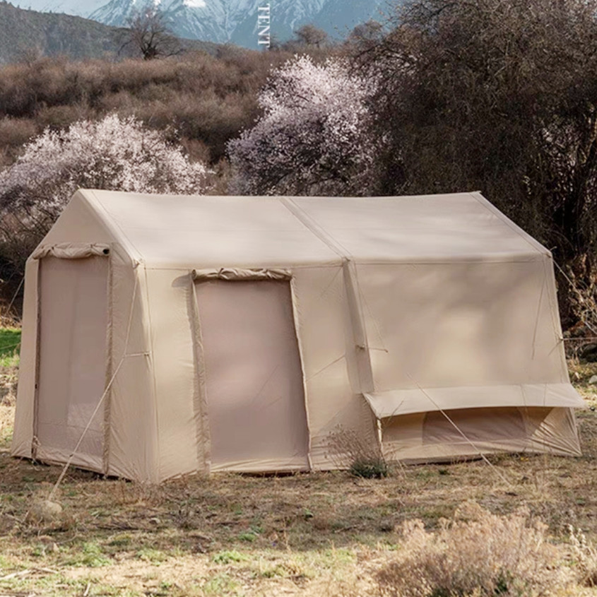 【Leicht zusammenzubauen】: Es wird mit einer manuellen aufblasbaren Pumpe mit eigenem Druckbegrenzungsventil geliefert, um Ihre Sicherheit zu gewährleisten. Sie können das Luxuszelt fürs Camping in 10 Minuten aufbauen.